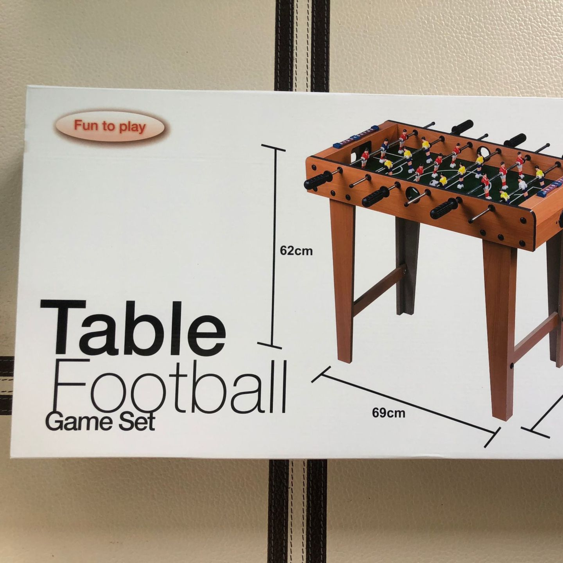 Futbolito de MDF con acabado en madera marrón que ofrece resistencia y elegancia para entretenimiento duradero. Equipado con barras metálicas robustas y mangos ergonómicos que aseguran control preciso durante el juego. Incluye todos los accesorios necesarios para comenzar a jugar inmediatamente. Su construcción en material premium lo hace ideal para salas de juegos, oficinas o espacios recreativos. Disfruta de partidas continuas con amigos y familia en un metegol que combina funcionalidad y estilo en un solo producto.